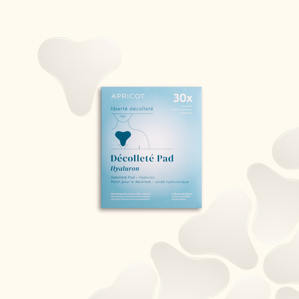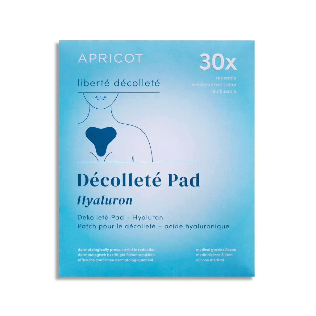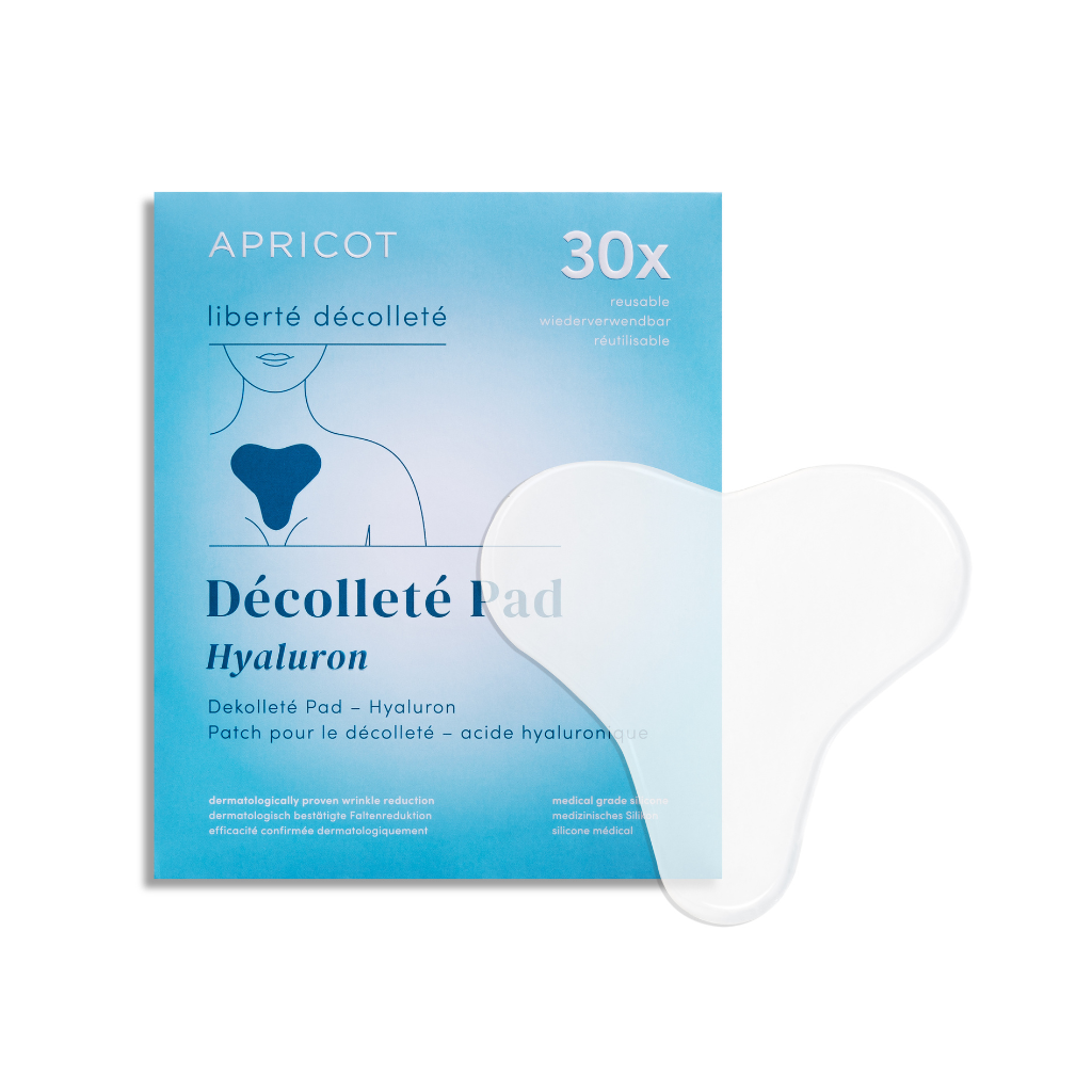 APRICOT Decolleté Pad with Hyaluron is the ultimate solution for smoother, firmer skin and the reduction of wrinkles, especially side sleeper lines. Made from high-quality medical silicone, this patented anti-aging pad is infused with low molecular weight hyaluronic acid, which deeply hydrates and tightens the skin. Reusable up to 30 times, it provides visible wrinkle reduction from the very first use, with continued improvements with regular application. Dermatologically tested and clinically proven for its effectiveness, this pad offers a non-invasive way to restore the youthful appearance of your décolleté. Handmade in Germany, vegan, and cruelty-free, APRICOT’s Decolleté Pad is an eco-friendly addition to your skincare routine.